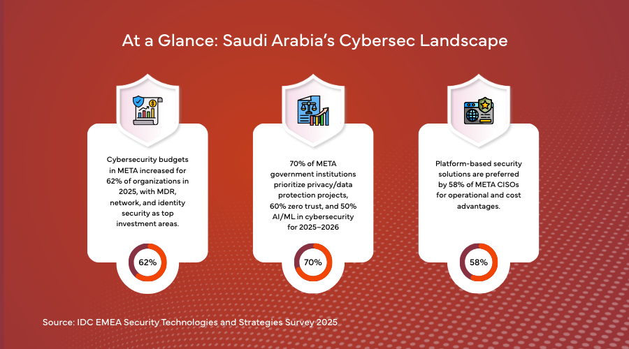 Enterprises in KSA are also aligning with key national frameworks including the National Cybersecurity Authority (NCA) guidelines, the Personal Data Protection Law (PDPL), and the Cloud Computing Regulatory Framework (CCRF).